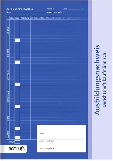 Roth Ausbildungsnachweis Kaufmannisch Blau A4 1 Woche Pro Seite 52 Wochen Geklammert Amazon De Kuche Haushalt Wohnen