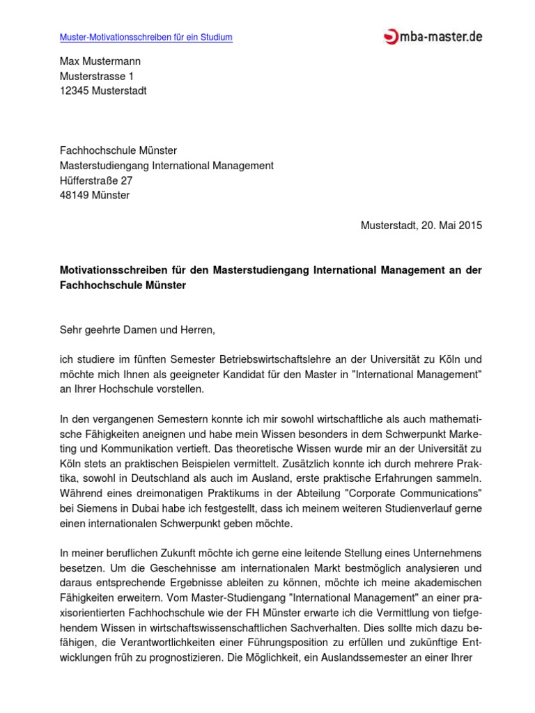 Motivationsschreiben hochschule. Falls du dir unter einem Motivationsschreiben für den Master noch wenig vorstellen kannst bieten wir dir die Möglichkeit dich von unseren Muster für Motivationsschreiben inspirieren zu lassen. Tipps für Motivationsschreiben bei besonderen Bewerbungen. Bekanntermaßen ist ein guter Ersteindruck wichtig und hat in diesem Fall vielleicht sogar Einfluss darauf ob du für den Bachelor-Studiengang zugelassen wirst.